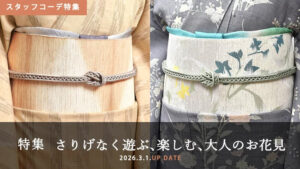 | 着物 | 色無地(紋なし) 小紋、お召 紬、木綿、麻 | お召、小紋 紬、浴衣 木綿、麻 |